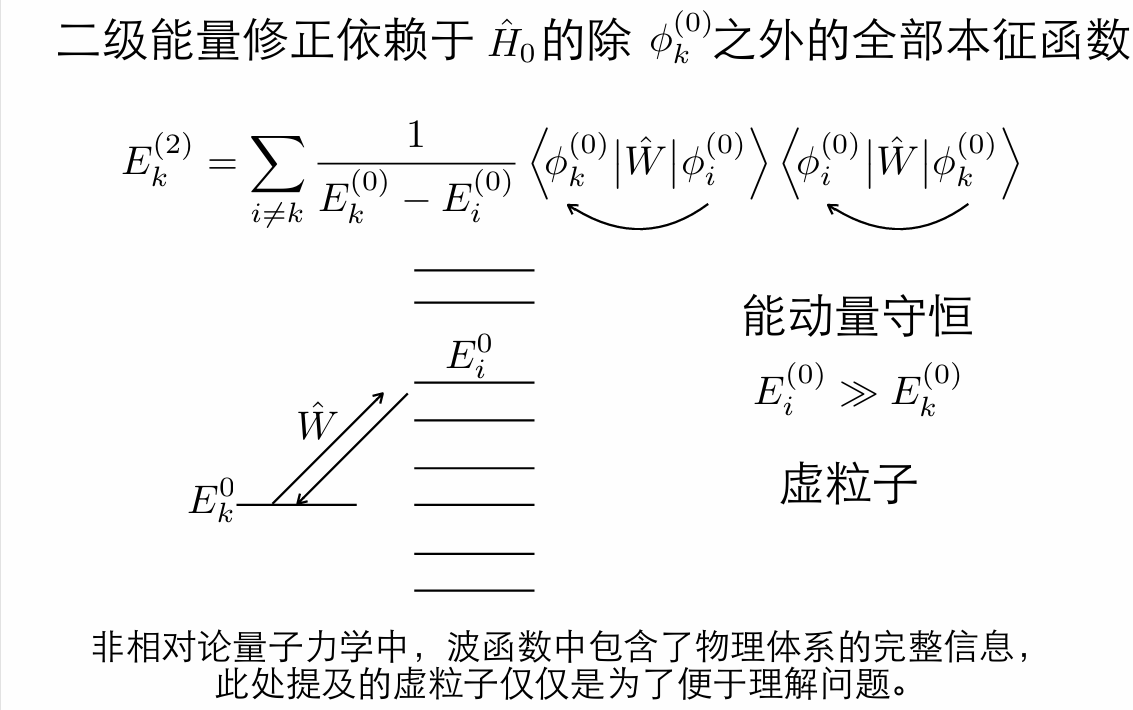 即二级修正依赖于 H0 的除 ψn(0) 以外全部波函数, 可采用下图进行理解